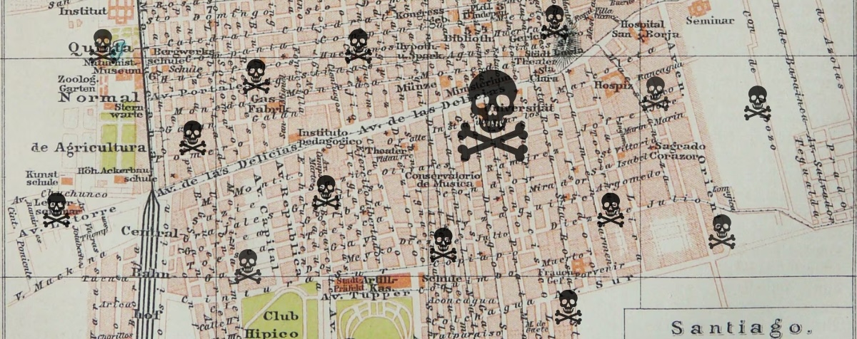 Within a year, the DINA was operating dozens of detention centers. At Londres 38, on average one prisoner disappeared every day. Nearby detention centers included the National Stadium; the Villa Grimaldi; the clandestine cells at Cuatro Álamos, part of the regular facilities at Tres Álamos; and the secret Simón Bolívar Barracks, operated by the DINA’s Lautaro Brigade. The DINA acquired a house on the Vía Naranja, in a wealthy suburb of Santiago, where chemists produced sarin gas in the basement as literary salons were held on the upper floor.