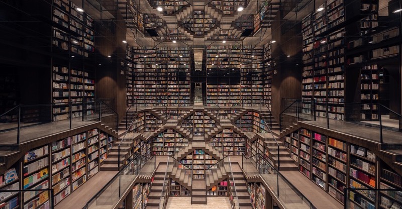 According to the chain’s own publicity, the Shenzhen store seeks to be a sacred temple of knowledge, in which the spiral staircase evokes the ladder of wisdom, the whole intended to create an absolutely unique “reading experience.” Li Xiang stated that the history of Shenzhen, a city of immigrants, inspired her to design an inclusive bookstore that would welcome all visitors and inspire them to buy the books featured on its shelves. Since 2010 the Zhongshuge chain has opened some twenty branches in China, in places like Beijing, Shanghai, Chongqing, and Chengdu (also startling in design).