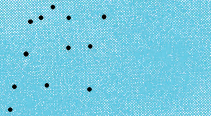 When I was a kid, I used to fill pages of notebooks with tiny dots—an odd, almost meditative habit. I’m not sure I can fully explain why that came back to me for this project, but something about making the title out of dots felt right: the contrast between expansiveness and fixation felt very much in the spirit of the novel. I found a sky image from old advertising to use as the backdrop and set the type, then spent hours filling each letter with dots. It’s the kind of process where you can’t really tell how it will look until every dot is in place.