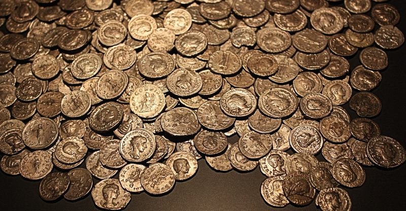 The story of each coin can be traced as far back as the extraction of its metals from the earth. Of the many cruel fates that might await the enslaved across the ancient world, condemnation to the mines—damnatio ad metalla—was the most feared of all. Slaves in their thousands—an estimated sixty thousand working at one Roman mine in Spain alone—were forced to hack endlessly at the rock in the near-total darkness of cramped, suffocating tunnels. So horrific were conditions for those laboring in the mines, being sent to one was generally considered a prolonged death sentence. When not being mined directly, the precious metals required for coinage were plundered from conquered lands. The emperor Trajan is thought to have brought home from his conquest of Dacia (modern Romania) around 225 tons of gold and 450 tons of silver to fill the state treasury—enough to strike 31 million gold aurei and 160 million silver denarii coins.
